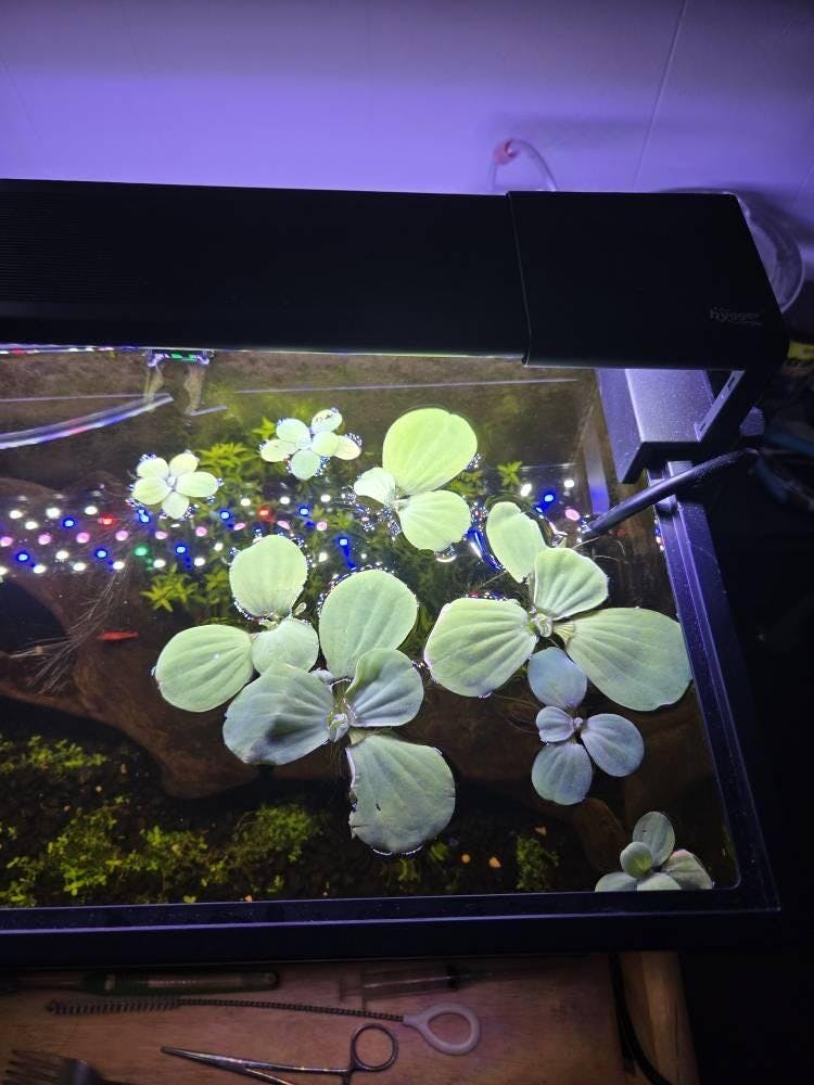 Add natural beauty and surface cover to your aquarium with this 4-pack of Water Lettuce (Pistia stratiotes). These vibrant floating plants help reduce algae by blocking excess light and absorbing nutrients, while also providing shelter for shrimp, fry, and other aquatic life. Each plant features soft, velvety leaves and long hanging roots that add depth and texture to any aquascape. Perfect for betta tanks, shrimp tanks, and ponds.